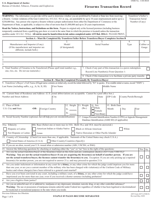 When it comes to purchasing firearms, there are certain legal requirements that must be followed. One of these requirements is filling out Form 4473, also known as the Firearms Transaction Record. This form is required by the Bureau of Alcohol, Tobacco, Firearms and Explosives (ATF) for all firearms transactions conducted by Federal Firearms Licensees (FFLs).