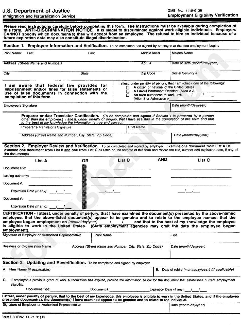 Free I 9 Form Employment Eligibility Verification PDF EForms
