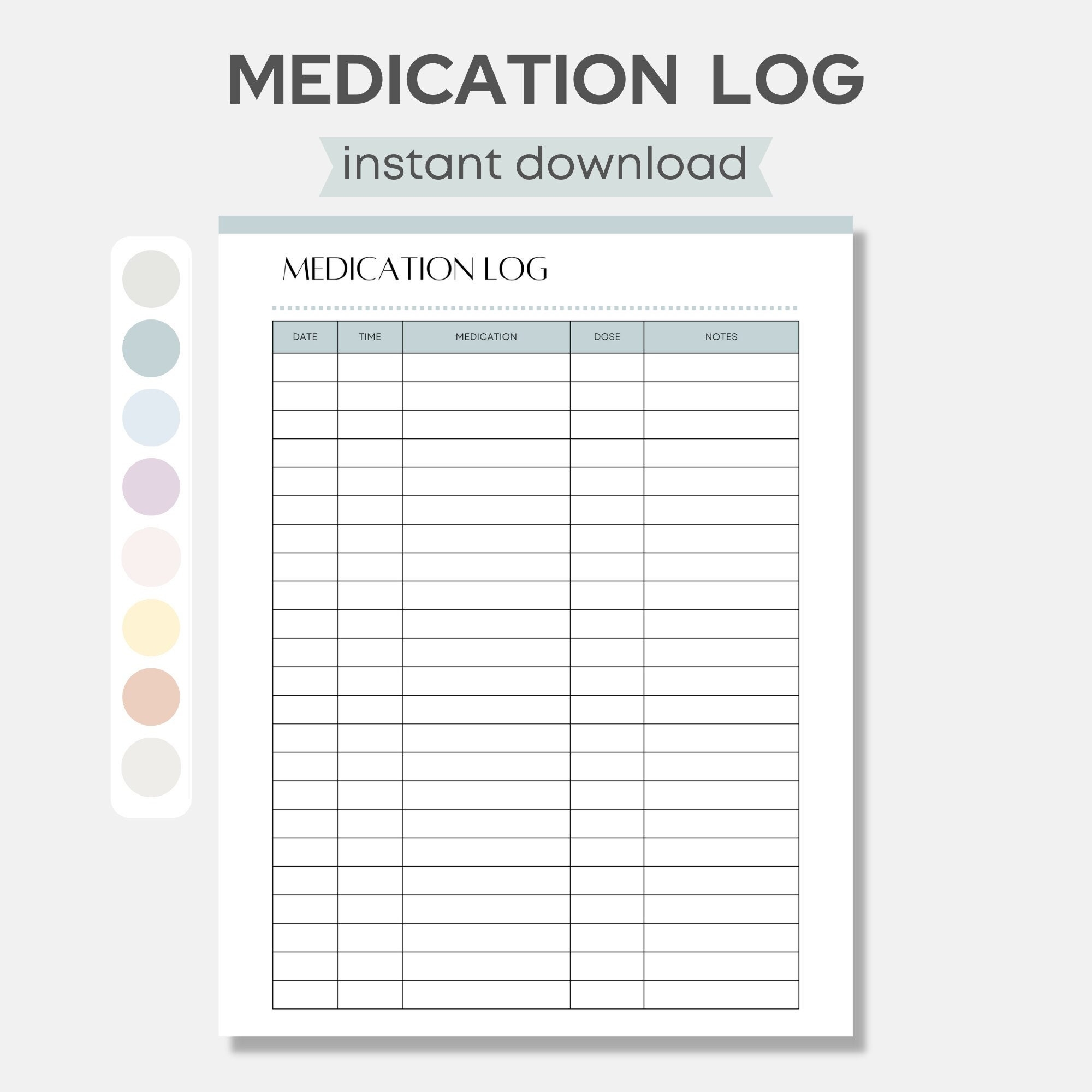 Printable Medication Log Medicine Tracker List Daily Medication Given Tracker Medication Chart Checklist Treatment Administration Record Etsy