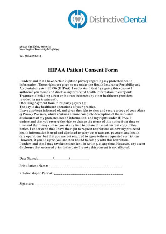 HIPAA Consent Form Fill Out Sign Online And Download PDF