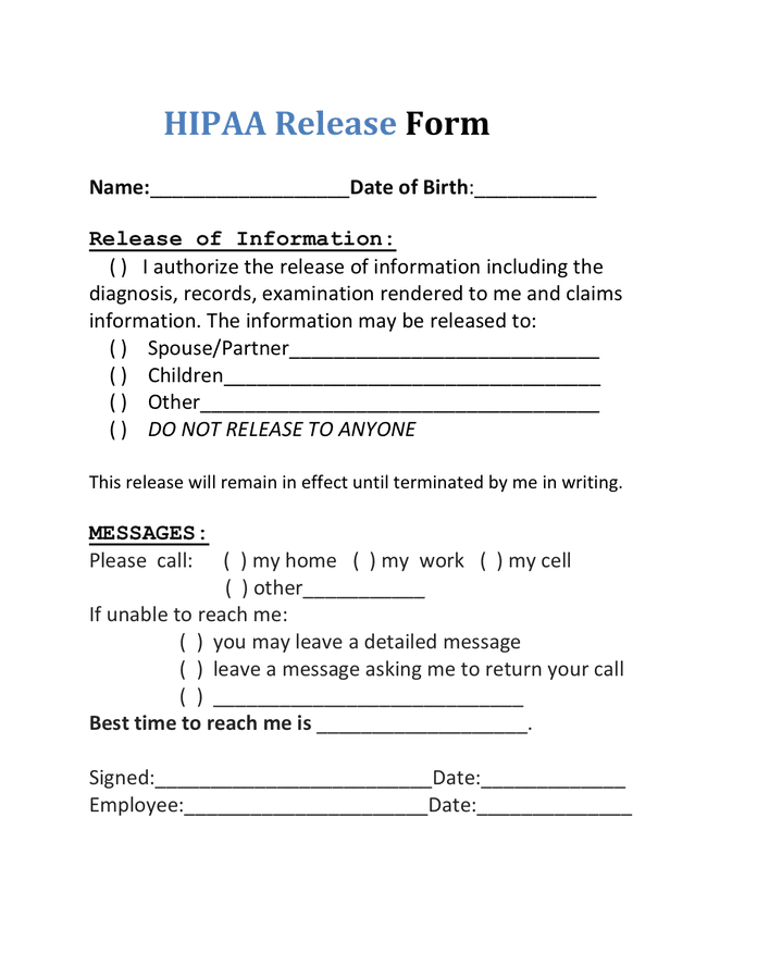 Printable Hipaa Release Form