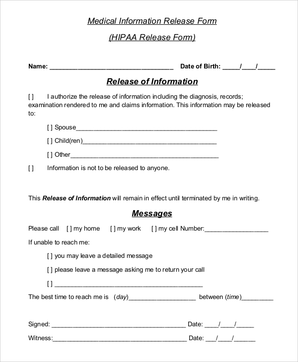 FREE 8 Sample Hipaa Release Forms In PDF MS Word