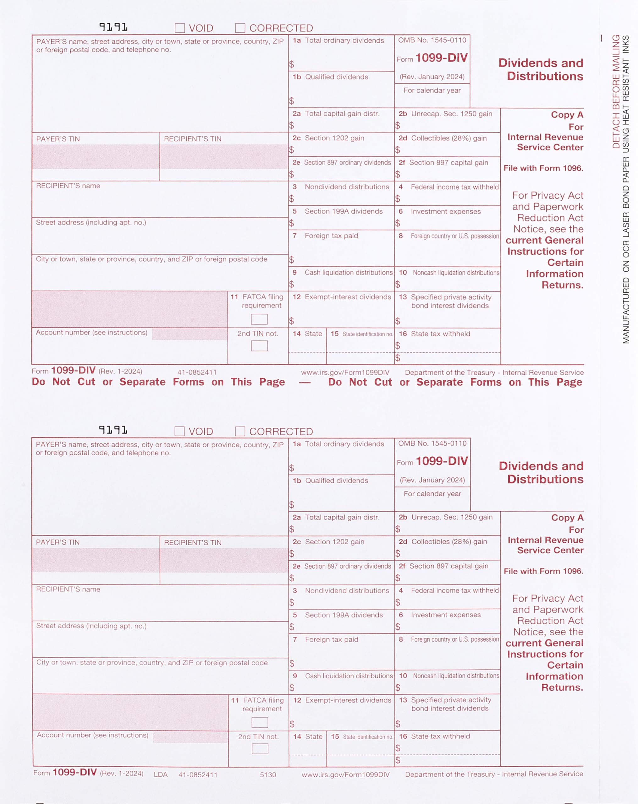 1099 DIV Income Tax Forms 2019 Set And 1096 Kit For 10 Vendors 4 Part Complete Laser Forms With Self Seal Envelopes In Value Pack 1099 DIV Income 2019 Amazon Sg Office Products