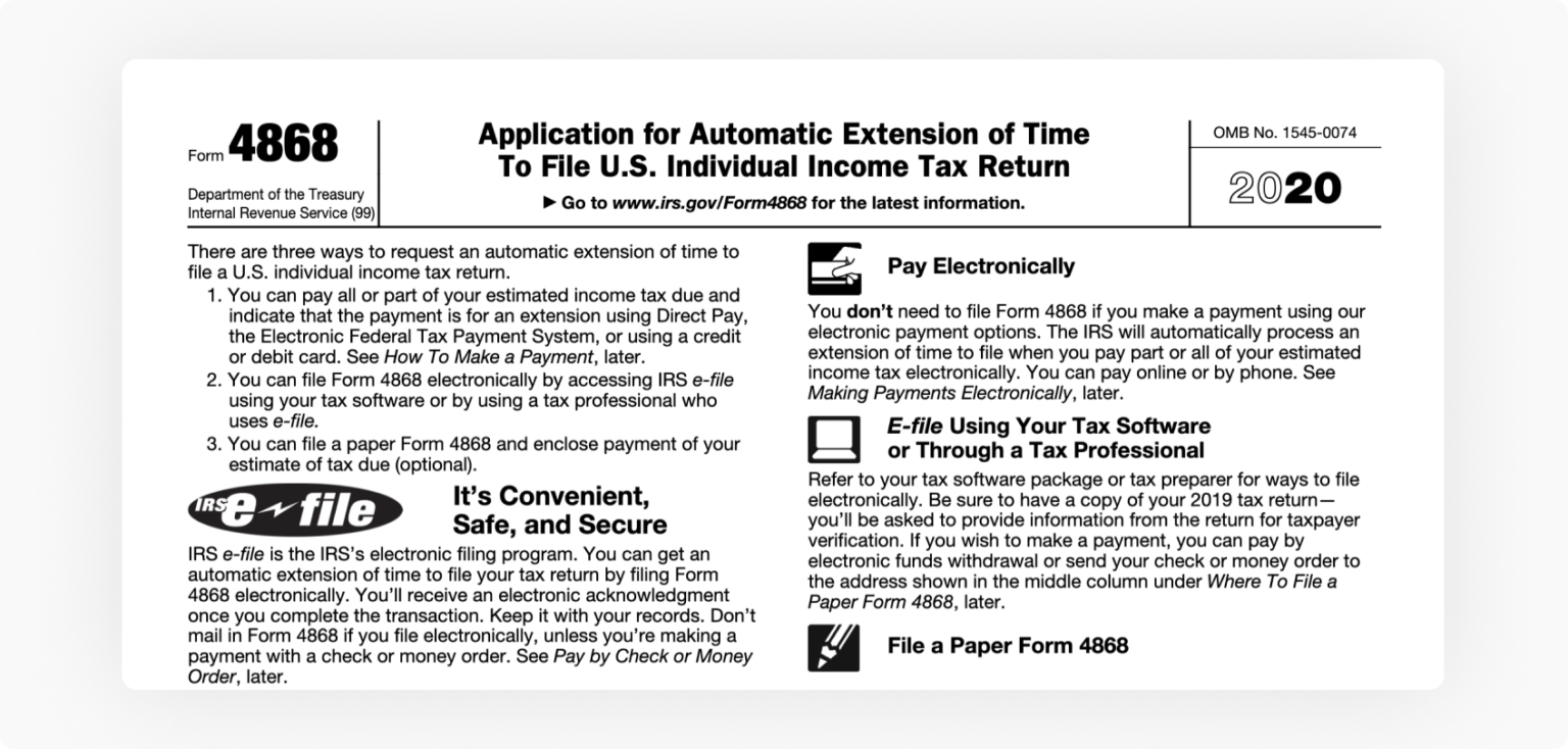 It’s important to note that Form 4868 is an extension to file your taxes, not an extension to pay any taxes owed. If you anticipate owing money to the IRS, it’s important to estimate your tax liability and make a payment with your extension request to avoid penalties and interest.