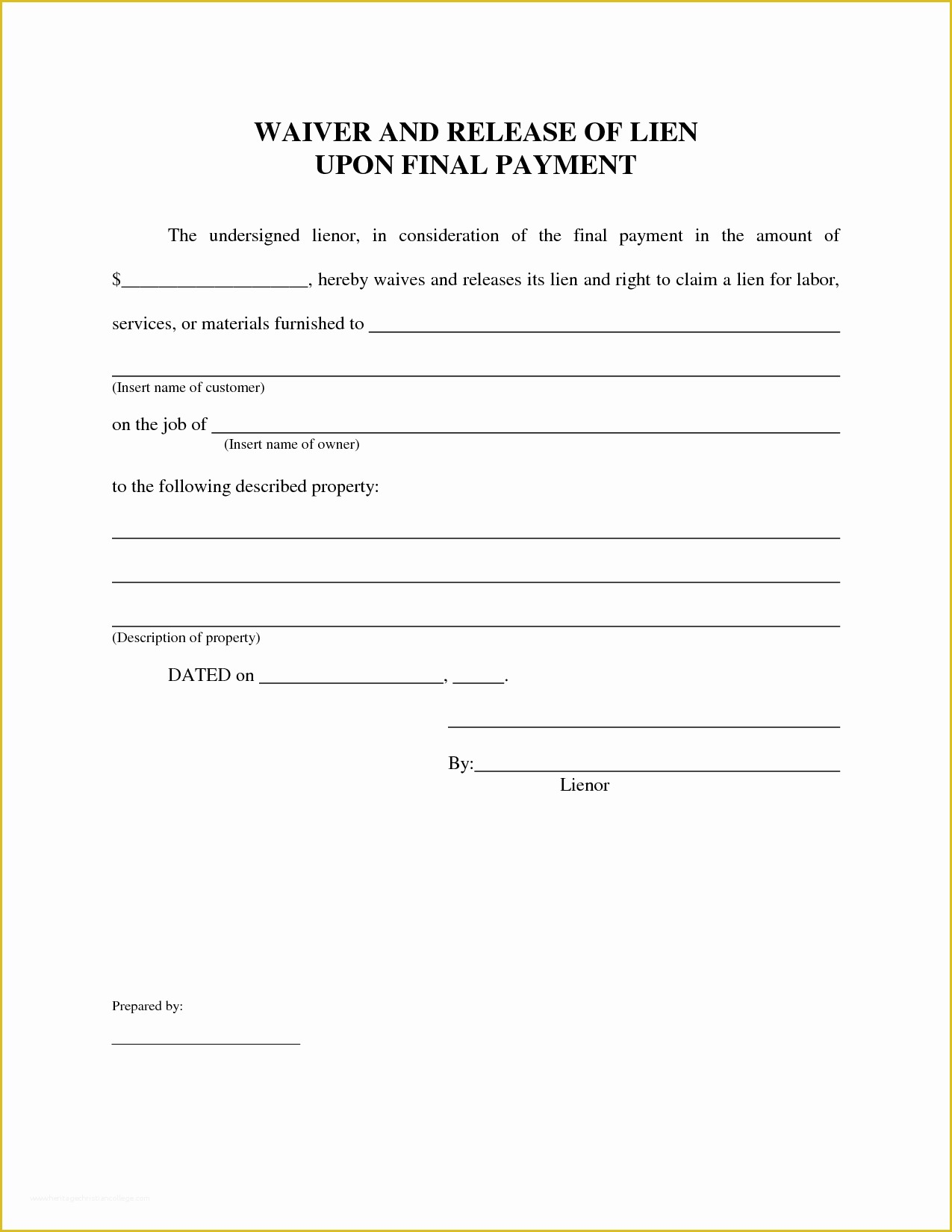 Free Printable Lien Waiver Form EDITABLE PDF WORD
