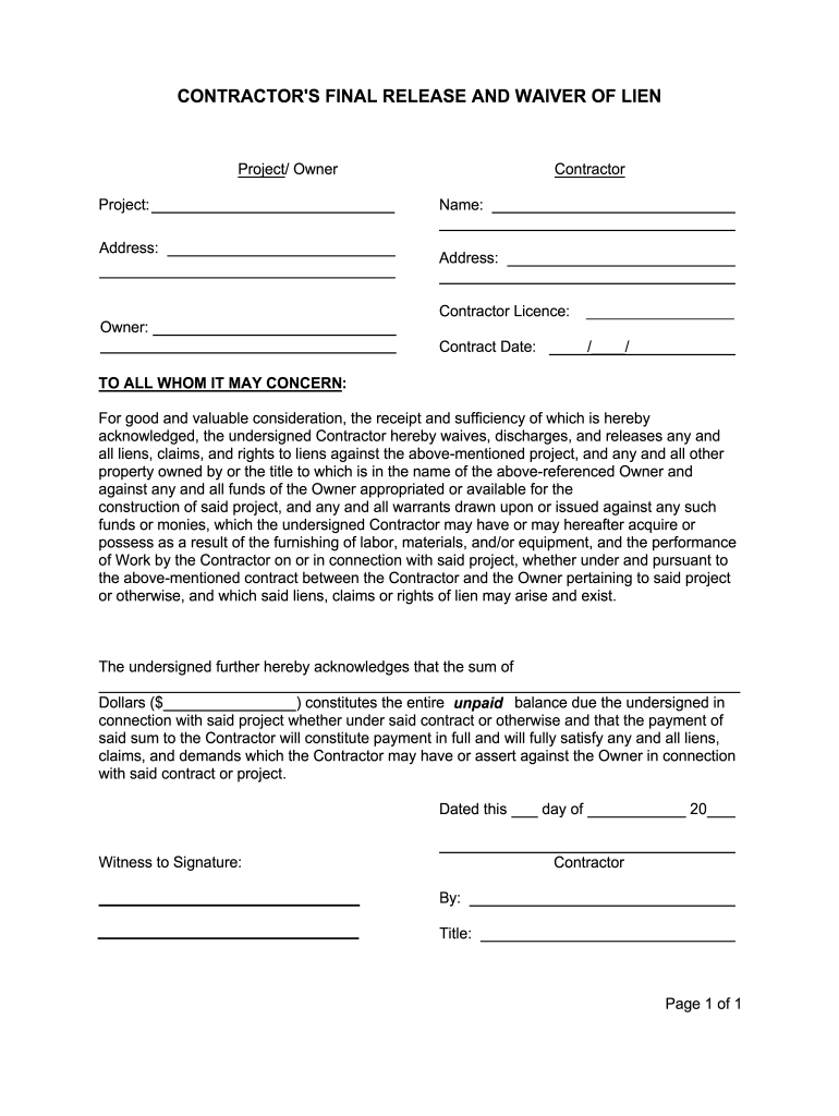 Free Printable Lien Waiver Printable Form Templates And Letter