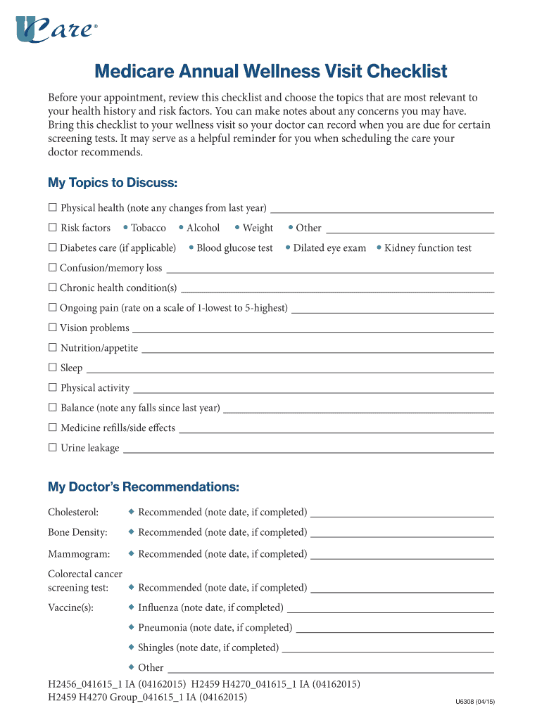 Printable Medicare Annual Wellness Visit Form Printable Templates