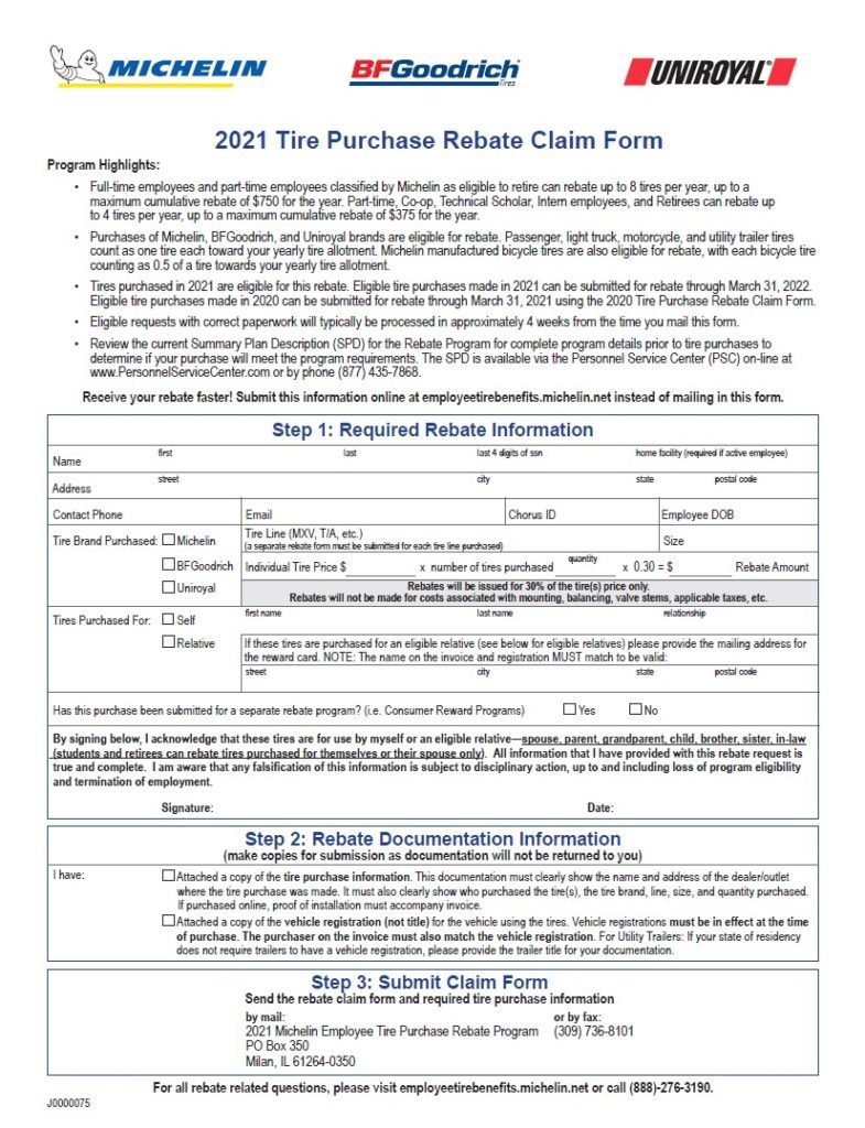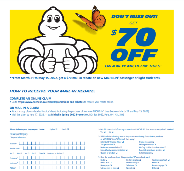 These forms are typically available on Michelin’s website or through participating retailers. By filling out the form with your purchase information and mailing it in, you can receive a rebate check in the mail, making your new tires even more affordable.
