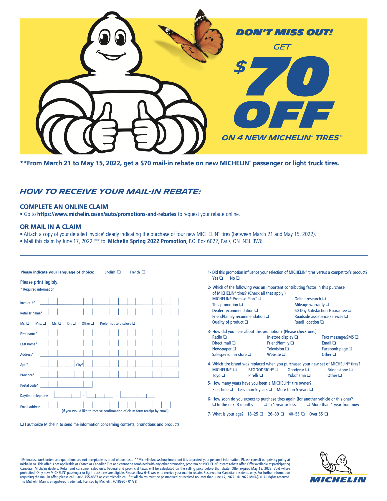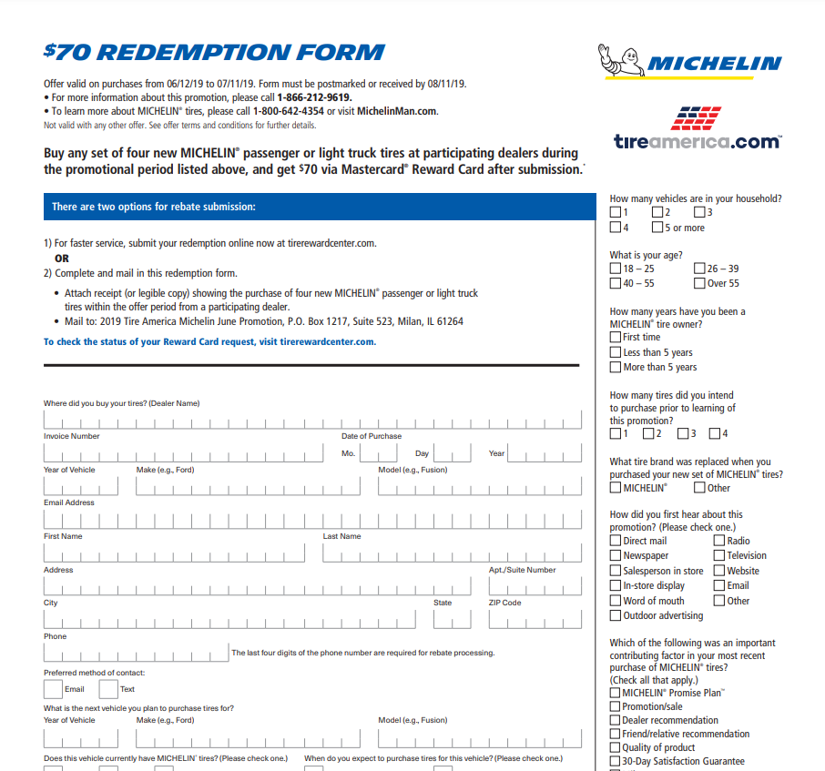 Printable Michelin Tire Rebate Form
