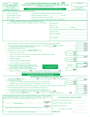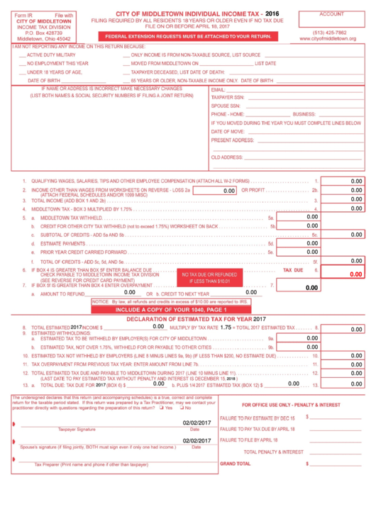 Fillable Form Ir City Of Middletown Individual Income Tax Form 2016