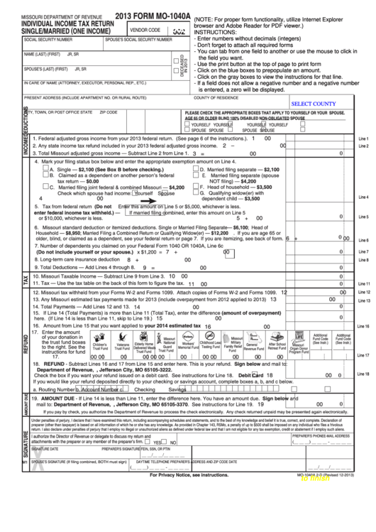 Form Mo 1040 Individual Income Tax Return Long Form 2013