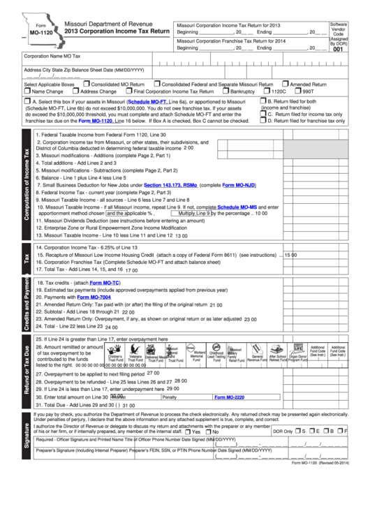 Form Mo 1120 2013 Corporation Income Tax Return State Of Missouri