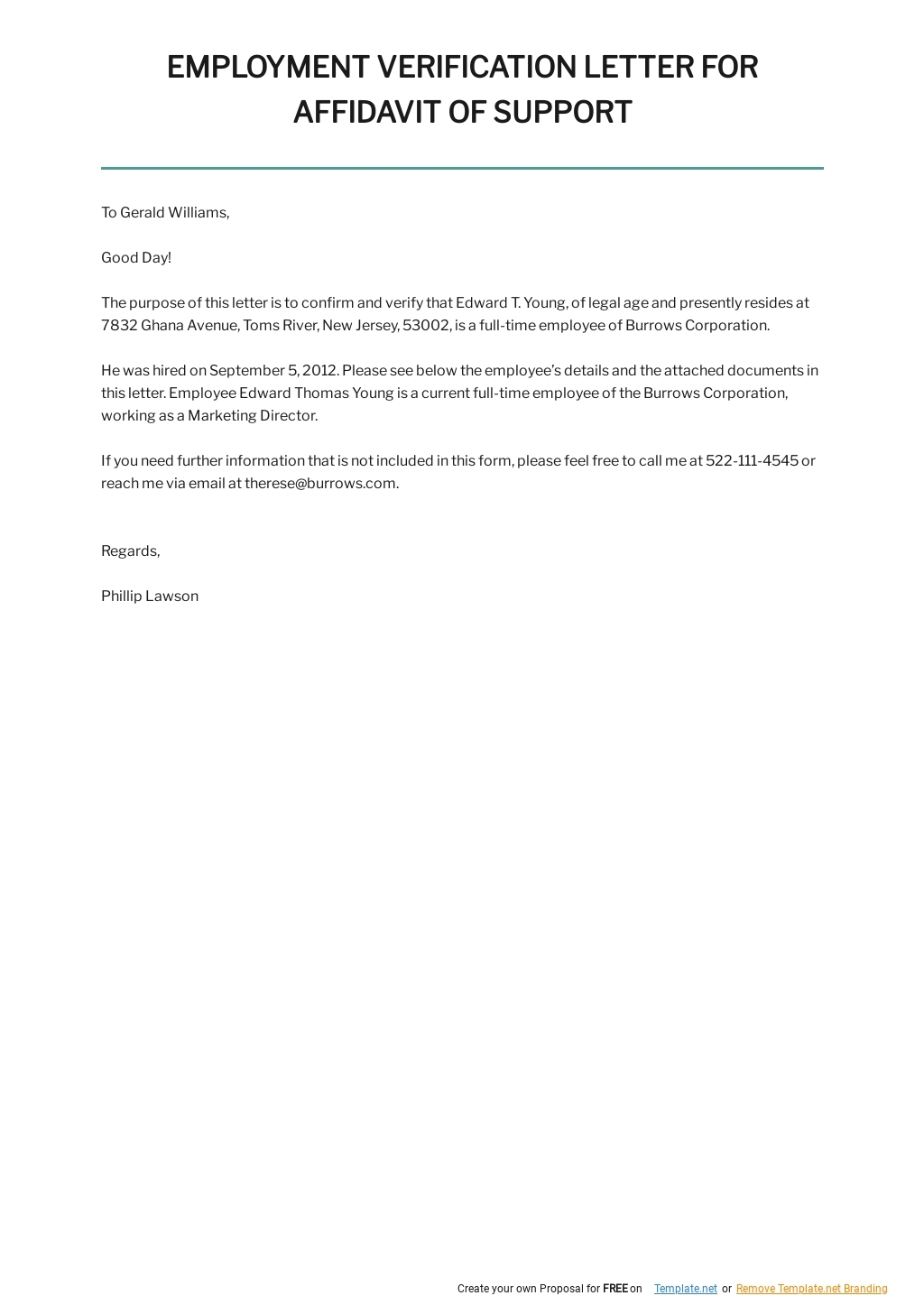 Employment Verification Letter For Affidavit Of Support In Word Google Docs Pages PDF Download Template