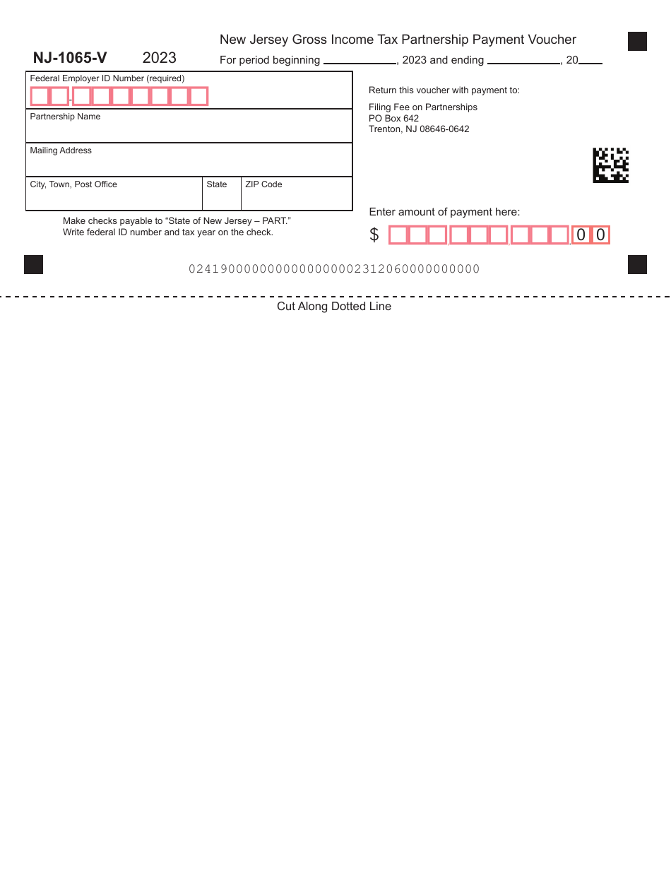 Form NJ 1065 V Download Fillable PDF Or Fill Online New Jersey Gross Income Tax Partnership Payment Voucher 2023 New Jersey Templateroller