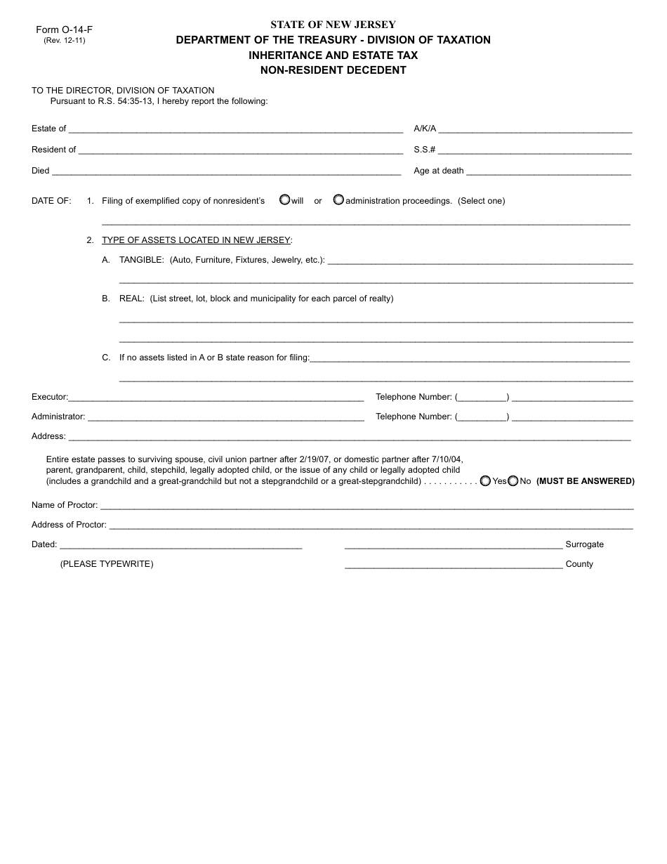 Form O 14 F Fill Out Sign Online And Download Fillable PDF New Jersey Templateroller