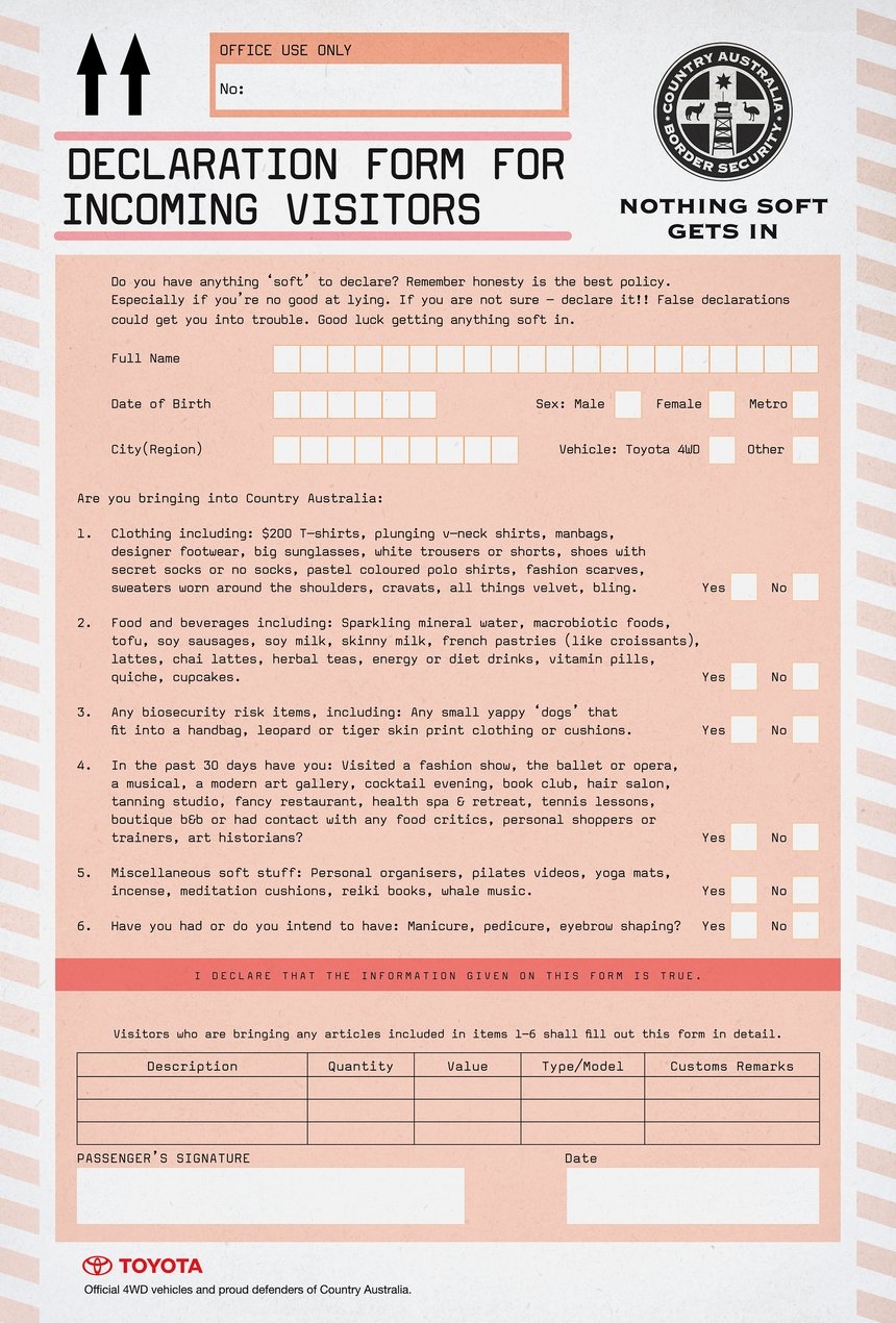 One Male Fragrance Yappy Dog Declaration Form Saatchi U0026 Saatchi Sydney Toyota Motor Corporation Du0026AD Awards 2010 Pencil Winner Press Advertising Du0026AD