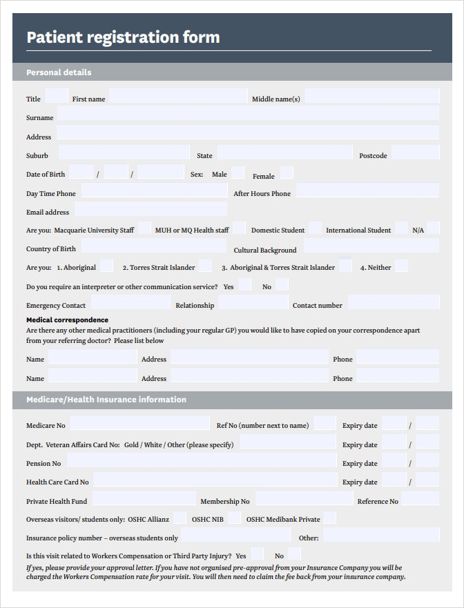 Patient Registration Form Download Free Documents For PDF Word And Excel