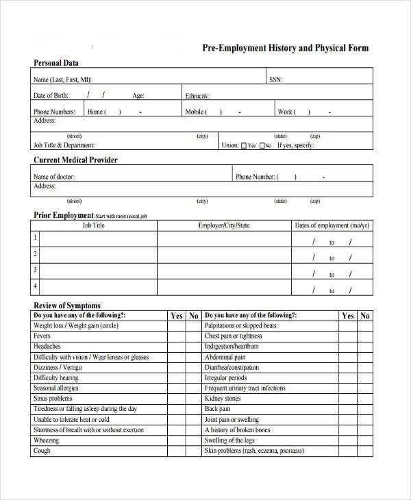 FREE 13 Physical Form Samples PDF MS Word Google Docs