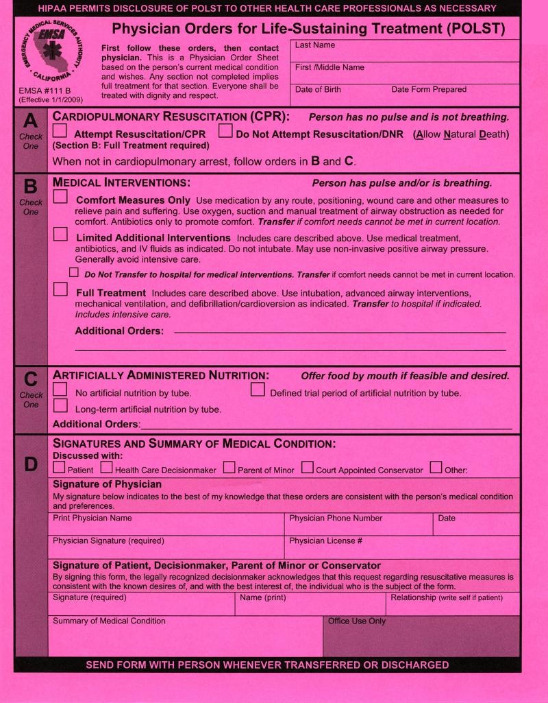 Fillable California Polst Form Printable Forms Free OnlinePrintable Polst Form