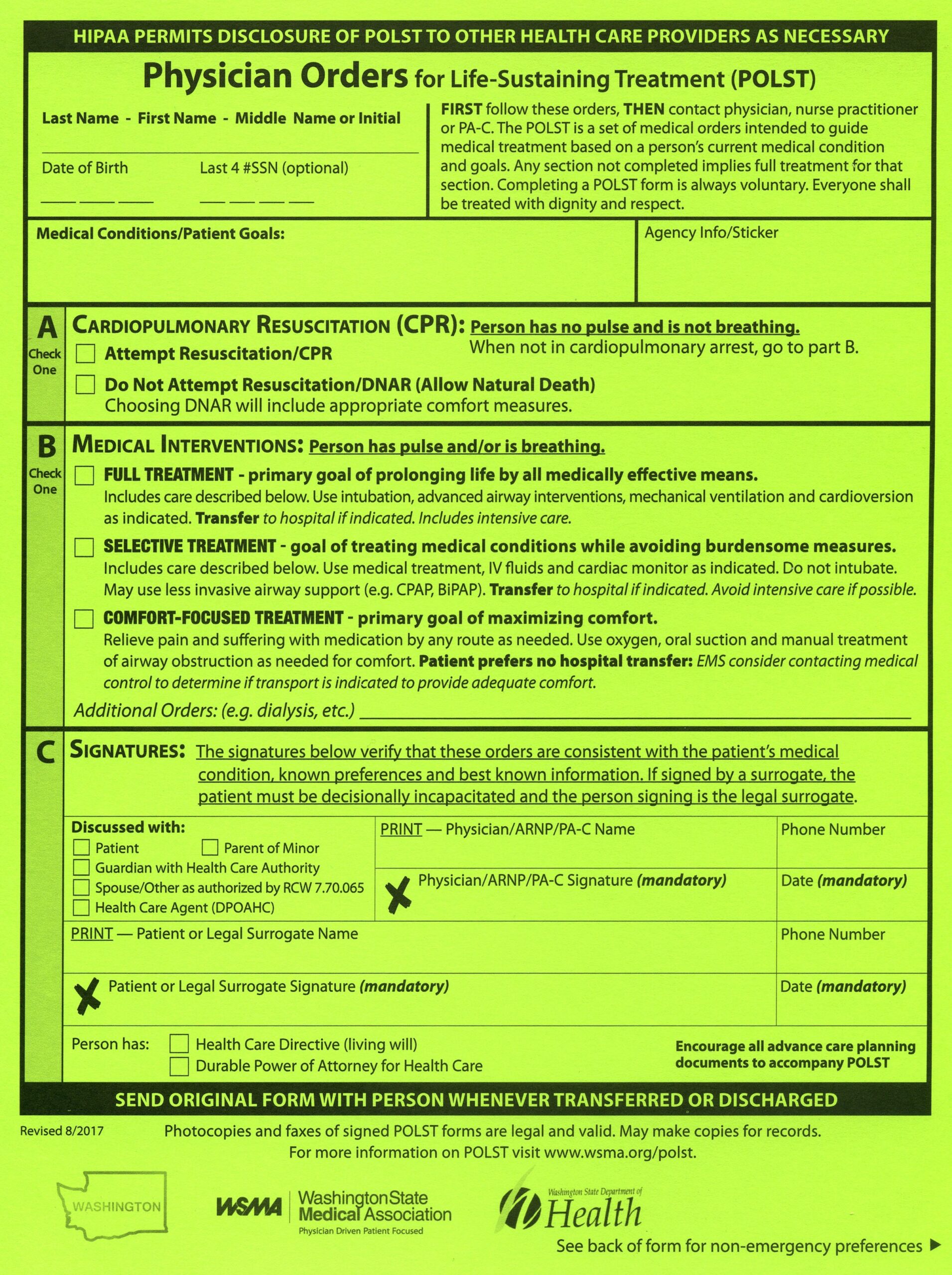 2021 2025 Form WA Physician Orders For Life Sustaining Treatment POLST 2021 2025 Form WA Physician Orders For Life Sustaining Treatment POLST
