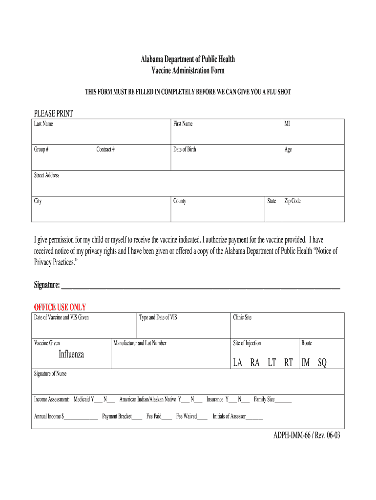 Flu Vaccine Form Pdf Fill Out Sign Online DocHub