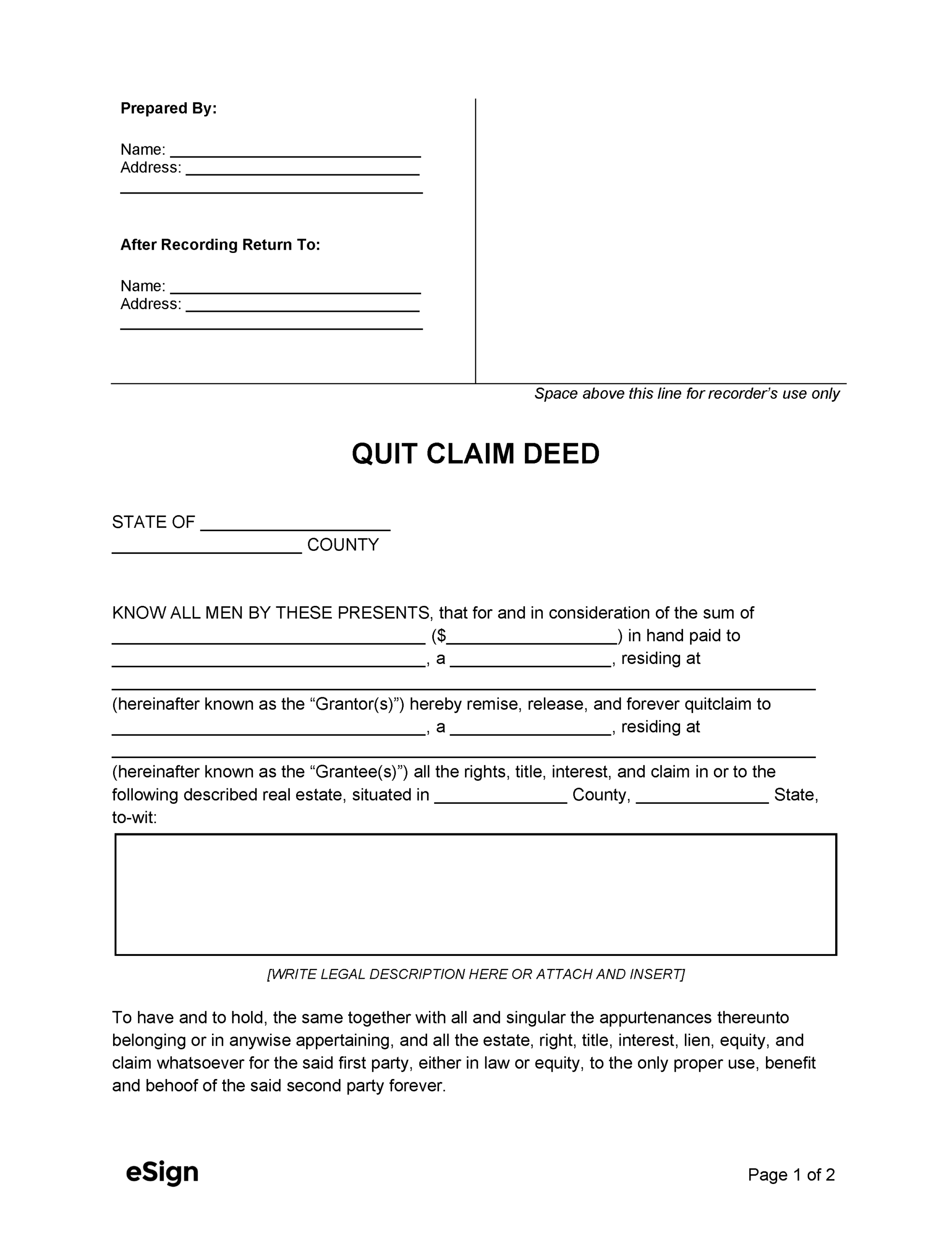 Printable Quit Claim Deed Form