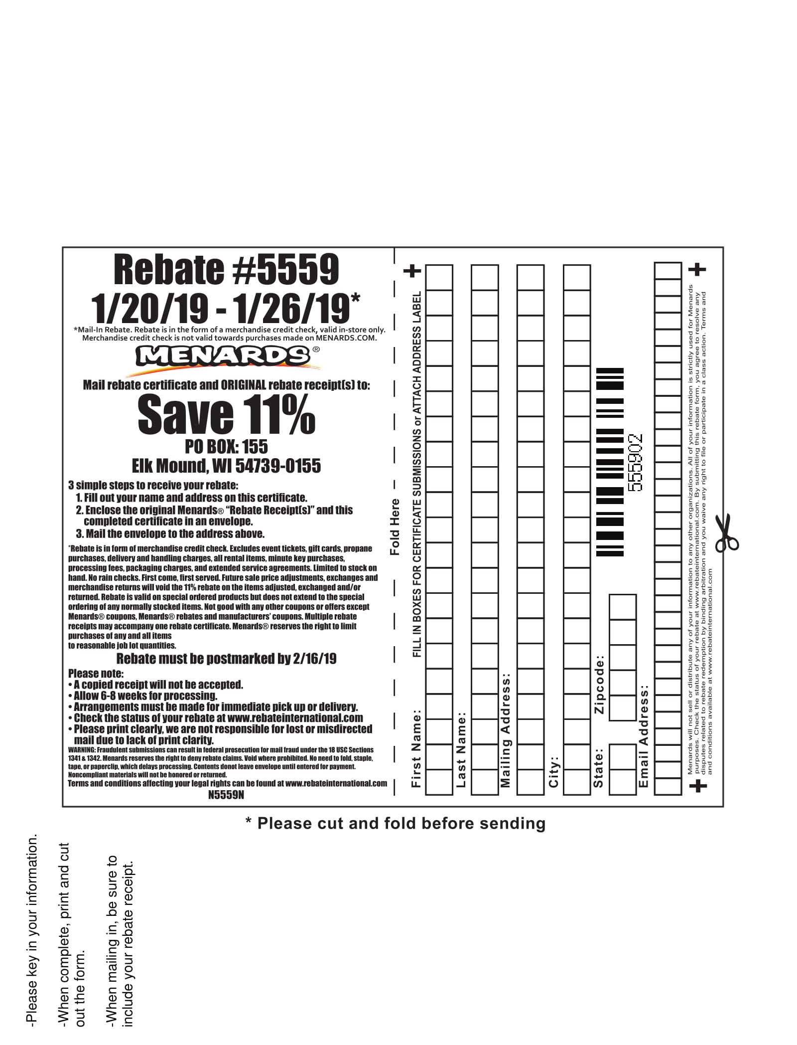 Printable Rebate Form 7609