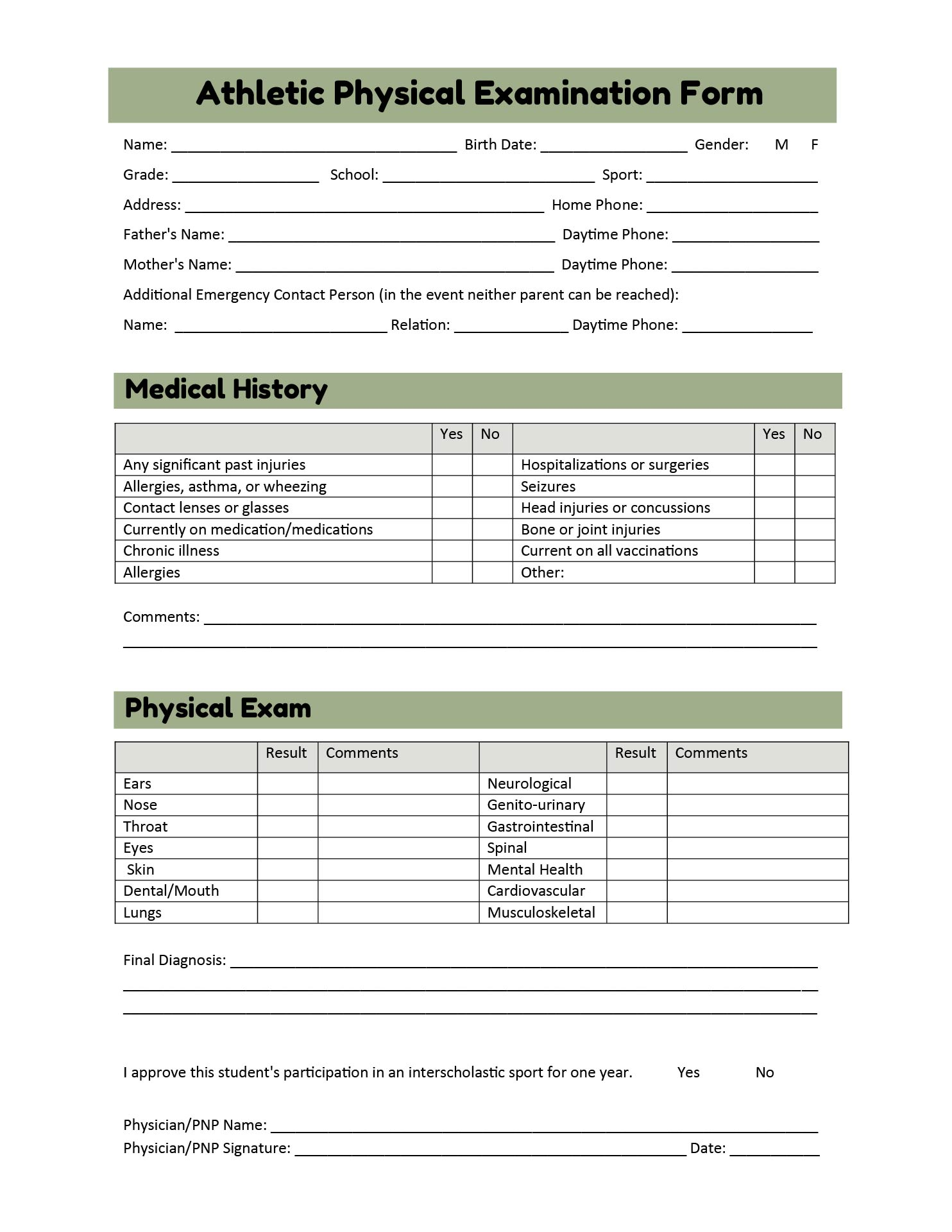 Printable Sports Physical Form Printable Form 2024