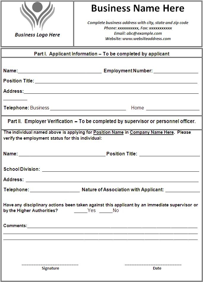 Employment Verification Form Template Free Printable Word Templates