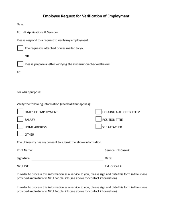 FREE 10 Sample Verification Of Employment Forms In PDF MS Word