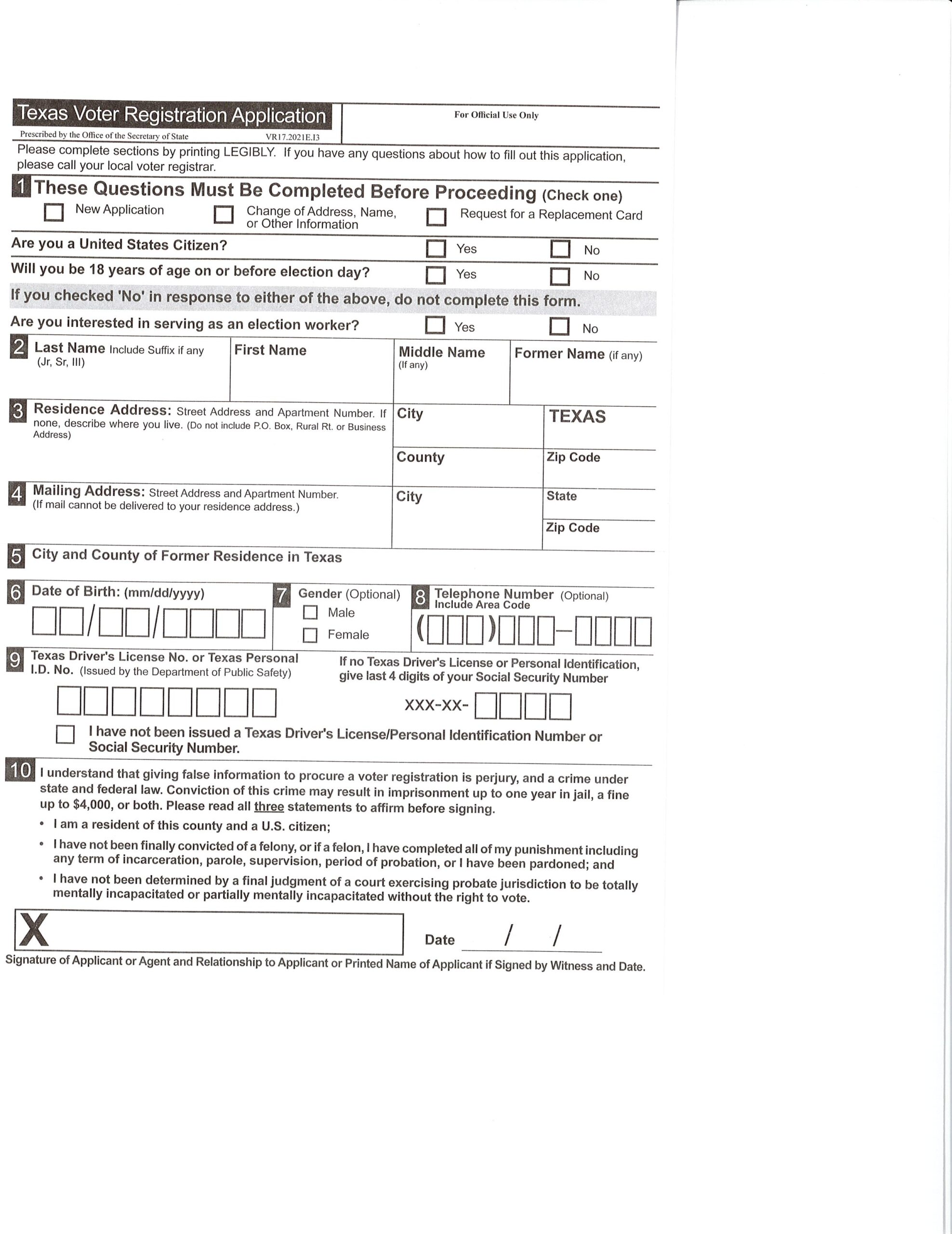 Printable Voter Registration Form Texas