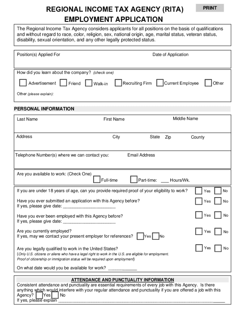 Fillable Online Regional Income Tax Agency rita Employment Fillable Online Regional Income Tax Agency Rita Employment