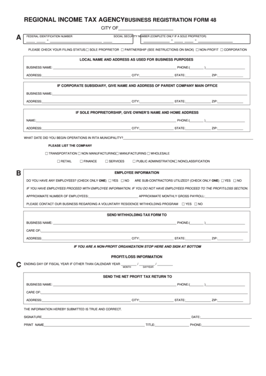 Application Form For Rita Regional Income Tax Agency Printable Pdf DownloadApplication Form For Rita Regional Income Tax Agency Printable Pdf Download