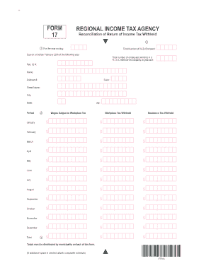 Fillable Online REGIONAL INCOME TAX AGENCY FORM 17 FormSend Fax Email Fillable Online REGIONAL INCOME TAX AGENCY FORM 17 FormSend Fax Email