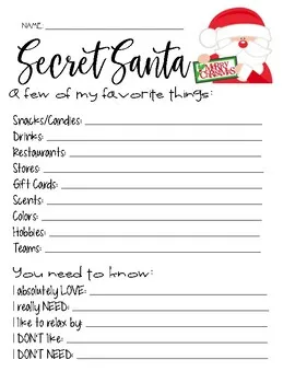 Free Printable Secret Santa Questionnaire Form Pdf