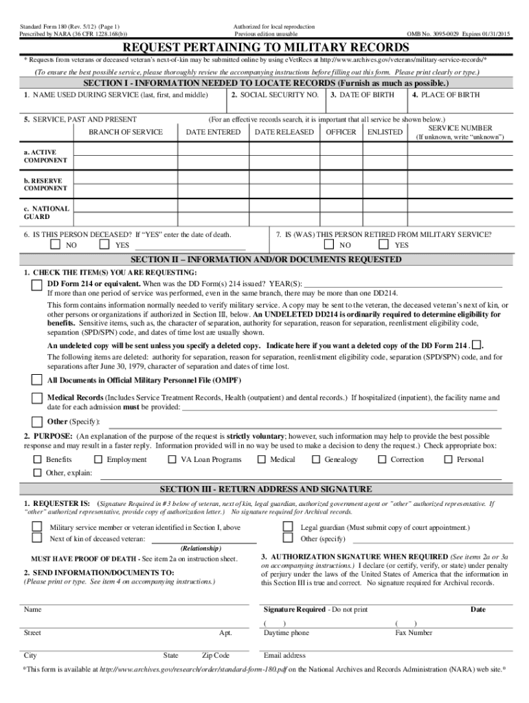 2015 2021 Form NARA SF 180 Fill Online Printable Fillable Blank