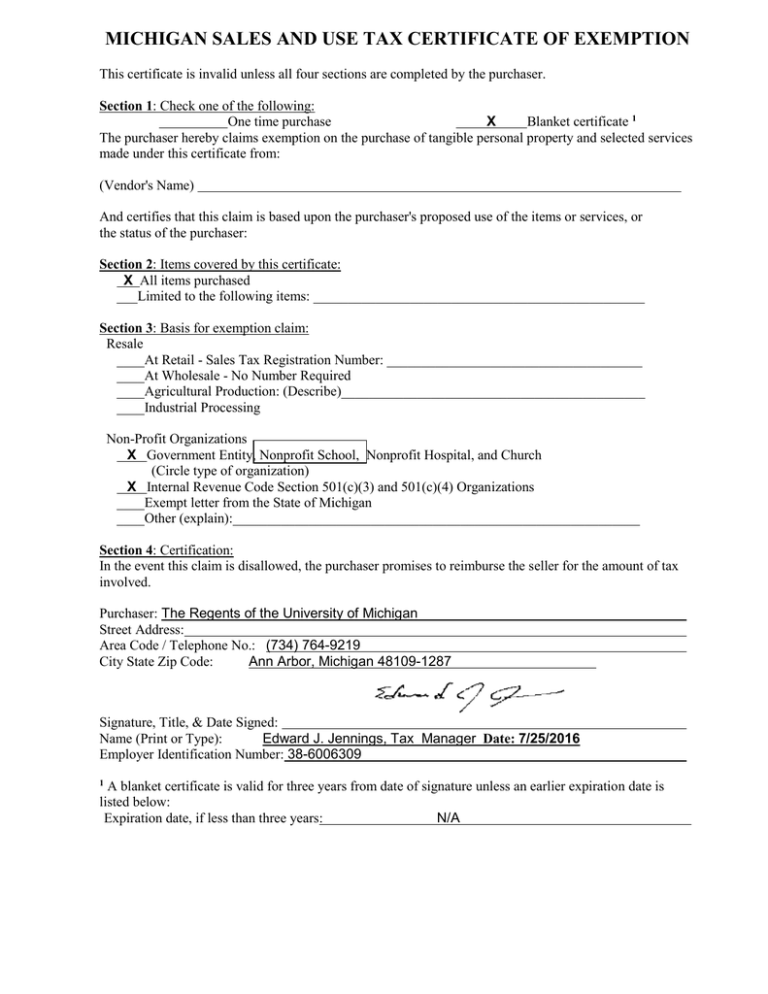 Michigan Sales Tax Exemption Form 2023 Printable Forms Free Online