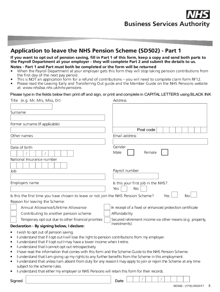 UK NHS SD502 2018 Fill And Sign Printable Template Online US Legal Uk Printable Pension Form