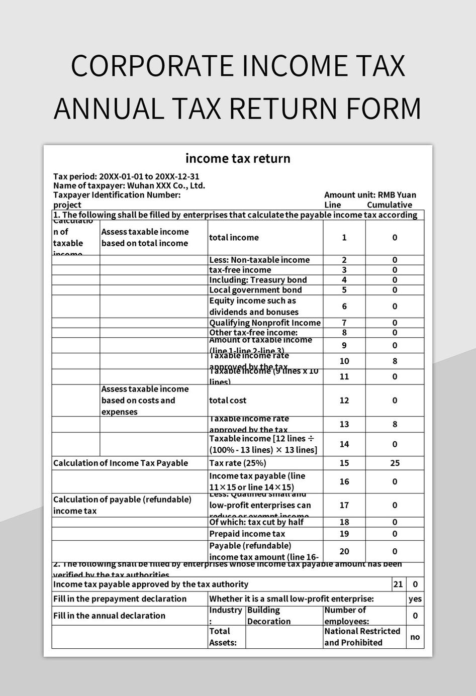 Corporate Income Tax Annual Tax Return Form Excel Template And Google