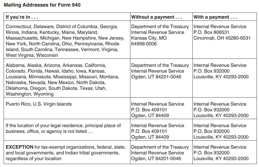 It’s important to note that the mailing address for your 940 tax form may vary depending on your location and whether you are including a payment with your form. To avoid any delays or issues, it’s recommended to double-check the mailing address provided by the IRS on the form instructions or their website.